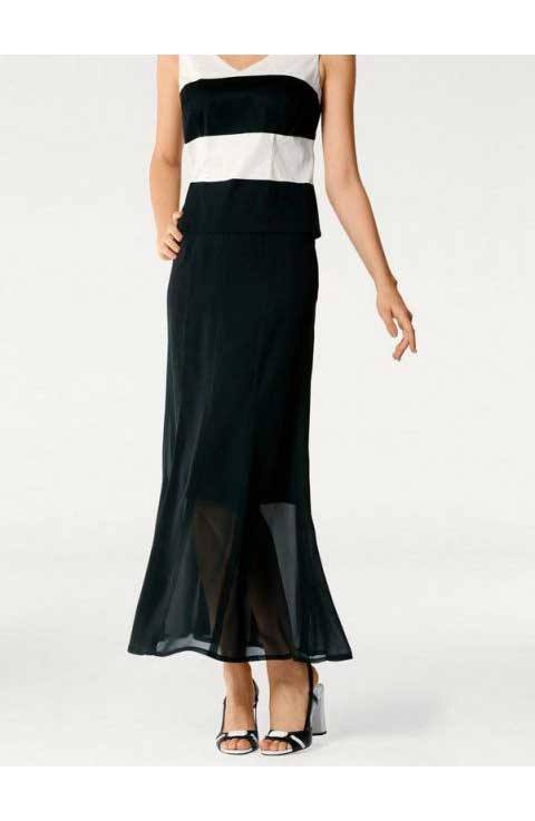 Elegante Klassiker erwachen zu neuem Leben in hochmodischer Silhouette. Der leicht transparente Godet-Rock in klassischer Form beweist echte Design-Qualitäten. Schlanke, figurbetonte Silhouette mit ausschwingendem Saum. Nahtfeiner Reißverschluss seitlich. Knielang gefüttert.